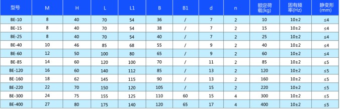 BE系列低頻復合橡膠減振器技術參數及外形尺寸表