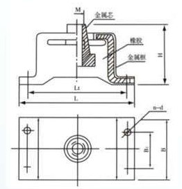 BE型低頻復合橡膠減振器由金屬與橡膠復合制成,金屬表面全部包復橡膠,能防止金屬銹蝕,產品固有頻率低,阻尼比適宜,橫向剛度高于垂向剛度,適用平置,倒置及側掛等多種安裝形式.平置使用時,橫向穩定性好.當承受較大沖擊時,可自動限位保護,同時對共振峰的抵制能力很強,對瞬態沖擊響應瞬時過度工況等引起的自振能迅速消失,設備不致出現任何晃動.該產品在較寬的干擾頻率范圍內有相當明顯的隔振效果,能適用于各類陸地,船用機械設備,如柴油機、風機、水泵、空壓機、空調機、精密儀器儀表等中小型機械設備的隔振.對有水平擾力的機械設備,使用本隔振器能取得良好的隔振效果。 BE型橡膠減振器示意圖
