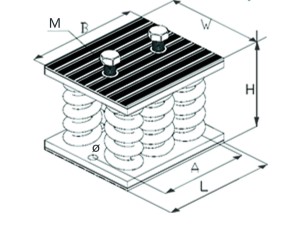 該產品充分利用綜合鋼彈簧的低頻和橡膠減振的阻尼特性,可消除高頻傳遞,達到明顯的減振降噪效果,又能解決機械設備重心不均的減振難點。